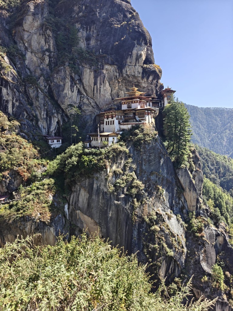 Vzpon zgodaj zjutraj. Pot se vije med molitvenimi zastavicami, konji čakajo pod klifom. Na višini 3.120 metrov, na robu pečine, visi Taksang Lhakhang, Tigrovo gnezdo. Legenda pravi, da je Guru Rinpoče priletel sem na hrbtu tigrice in med meditacijo premagal demone. Vsak korak navzgor je test volje in ponižnosti. Ko končno prispeš, srce bije, dih je kratek. Pred tabo – samostan, prilepljen na nebo. Pod tabo – prepad. V tistem trenutku ni več ne vere ne nevere – le občutek, da si majhen, a del nečesa večjega. Butan ima skrivnosti. Še ga bo treba raziskovati.