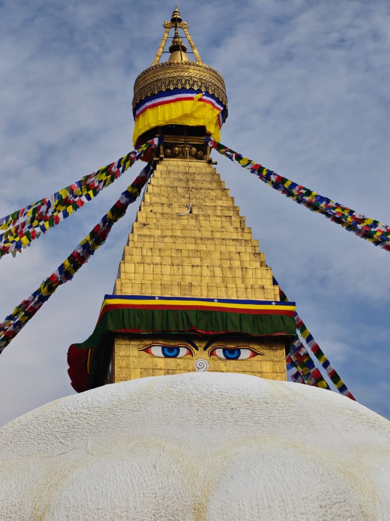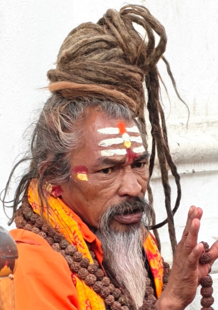 Sadhuji kadijo, molijo, gledajo v večnost. Na drugi strani mesta – Bodnath, stupa, ki gleda v vse smeri. Molitvene zastavice šumijo kot valovi. Ko hodim med trgovinami z dišavami in maskami, se spomnim Butana. Tam je duša mirna, tu je divja. Obe pa človeški. Kakšno je bogastvo različnosti sveta.