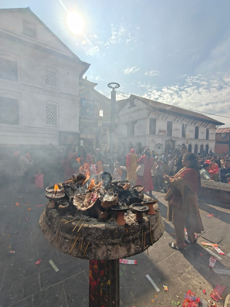 Polet traja uro, a zdi se, da sem prešel stoletja. Katmandu – svet barv, hrupa in vonjav. Po urejenih ulicah Thimphuja zdaj stopam po prahu Durbar Squarea. Motoji, opice, menihi in popotniki, turisti in sveti možje. Na reki Bagmati ogenj in pepel, na bregu tempelj Pašupatinath.