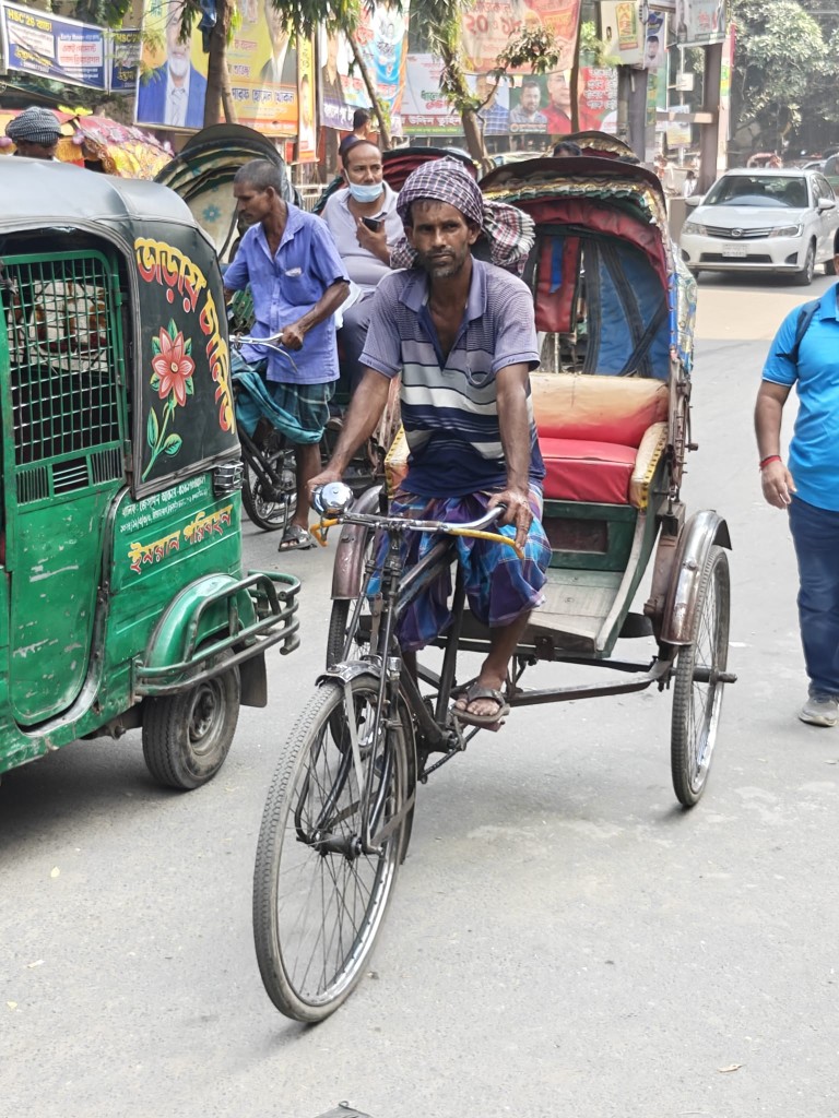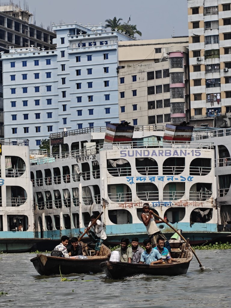 Letalo se zniža nad zeleno delto reke Ganges, pod mano neskončni mozaik vodnih poti in hišic iz pločevine. Zgodnje jutro v Dhaki, mestu, kjer živi skoraj 24 milijonov ljudi. Če obstaja simbol urbanega življenja brez premora, je to tu: 800.000 rikš, vsak voznik umetnik svojega jeklenega konjička, vsaka rikša mini galerija barv: tiger, boginja Durga, križ, cvet, pa tudi Lionel Messi, Buddha in Mickey Mouse. Vse v istem kaosu. Bangladeš, nekdanji Vzhodni Pakistan, zdaj država, kjer je gostota prebivalstva večja kot kjerkoli drugje na svetu. A z dušo, ki zna preživeti. Z ladjico po reki Sitalakya opazujem življenje: otroci skačejo v vodo, ženske perejo ob obali, trgovci polnijo ladjice z vrečami riža in juto. Nad nami jate čapelj, ob obali stare hiše, ki se nagibajo v vodo kot utrujeni spomini. V Rupshiju gledam, kako tkejo jamdani sarije – ročno, z nitjo tanko kot dih, vzorec po vzorec, tako dragocen, da en sam kos tkejo tedne. Ta umetnost je na seznamu nesnovne dediščine UNESCO – spomin, ki diha skozi prste žensk.