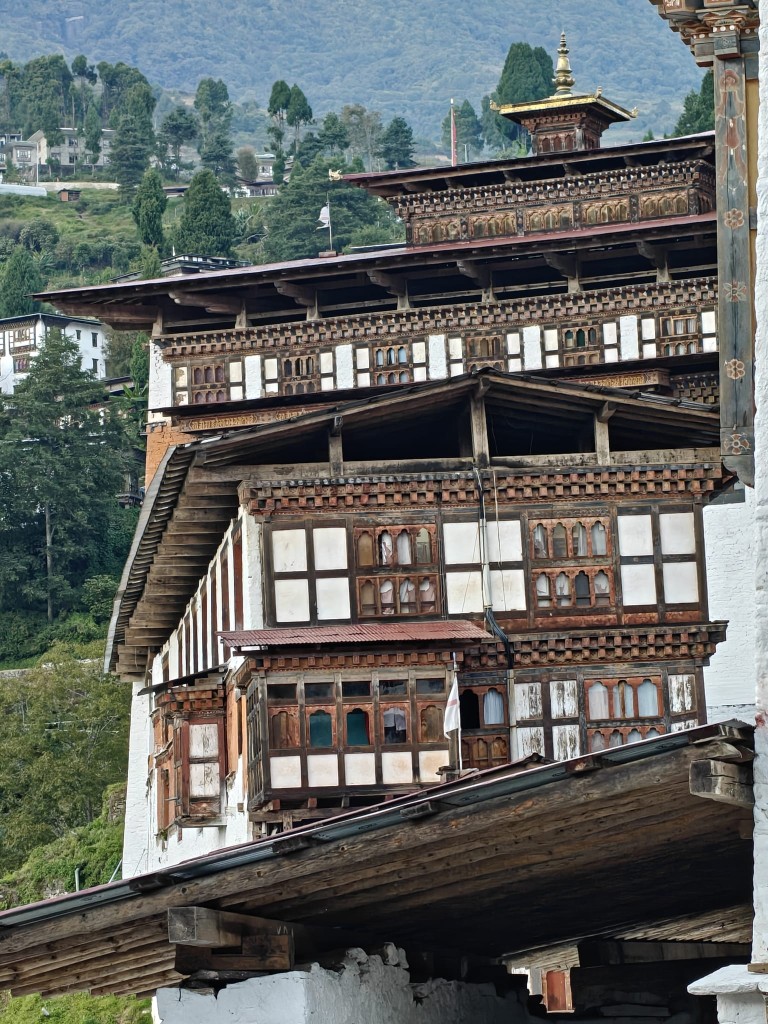 Modro sončno jutro v Thimphuju. Pred nami palača z zeleno streho, sedež vlade. Vhod varujejo stražarji v narodnih oblačilih, s spoštljivim pogledom, ki ne meri, ampak pozdravlja.