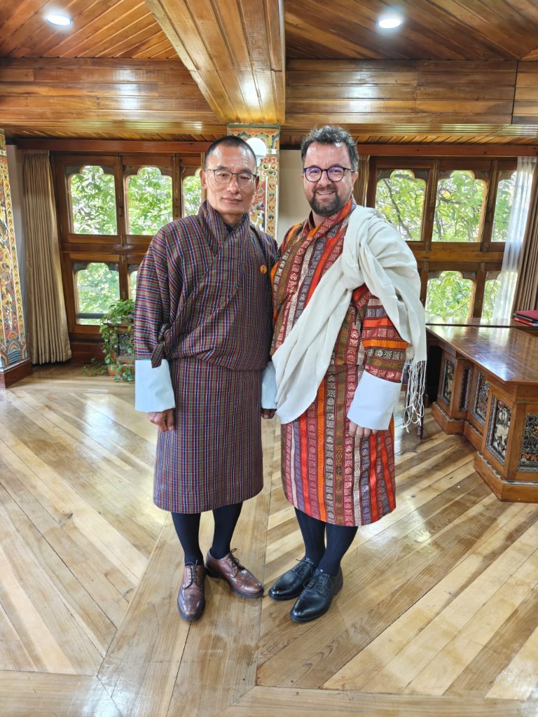 Ko vstopim, čutim tisto redko energijo – ne oblast, ampak odgovornost. Na hodniku se na kratko ustavi predsednik vlade, pozdrav, nasmeh. Ta pogovor ni o denarju, ni o orožju, temveč o prihodnosti, o vrednotah, o sreči kot politični kategoriji. O tem, kako lahko Slovenija in Butan sodelujeta: v gozdarstvu, trajnostnem kmetijstvu, čebelarstvu. Pogovor mine hitro, a v njem je moč stoletij. Ko izstopim, pomislim: redko srečaš politiko, ki ima mir v očeh. In morda je prav to tisto, kar svet potrebuje – pogum, da meriš napredek v notranjem miru.