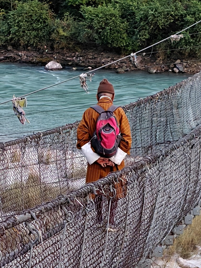 Vožnja proti Thimphuju: skozi doline, po vijugasti cesti ob smrekah, molitvenih zastavicah in slapovih. Na vsakem ovinku majhna kapelica, molitveni mlinček in nasmeh pastirja.