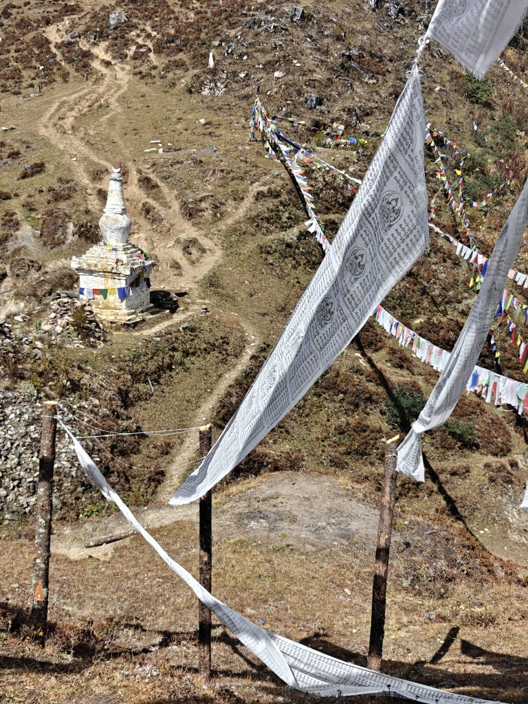 Na prelazu Dochula, 3.150 m visoko, stoji 108 stup, ki jih je dala postaviti kraljica v spomin na padle vojake. Vsaka stupa – molitev, vsaka zastava – obljuba. Ko veter zapiha, se sliši, kot bi nebo dihalo. V ozadju se dvigajo sedemtisočaki: Jomolhari, Kangkar Puensum, ki je s 7.570 m najvišja neraziskana gora sveta. Butanci verjamejo, da je tam dom bogov, zato na gore ne plezajo. Kakšno spoštovanje narave. V mislih mi šine, kako mi v Evropi vse merimo – kdo je višji, hitrejši, bogatejši. Tukaj merijo v veri in spoštovanju. Ko spustim pogled, se zavem, da je svet lahko tudi preprost. Včasih brez številk, brez KPI-jev, brez boljših, večjih, močnejših.