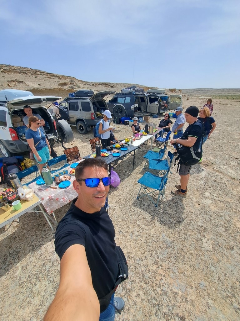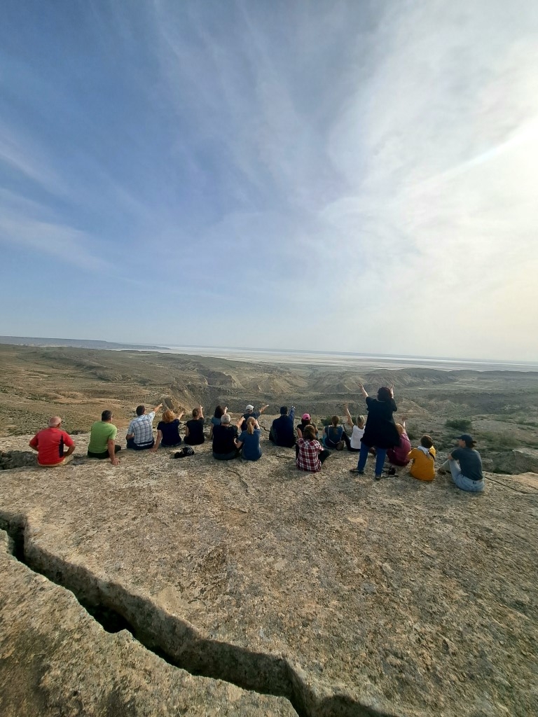 Naša odprava stoji na robu obale in zre v neskončno praznino. Eni prvih Slovencev smo si drznili poleteti na drug planet, naše vozilo je šele deseto, ki je letos vstopilo v nacionalni park Ustyurt. Park rezerviran le za redke živalske vrste, ki uspejo preživeti v tem okolju.